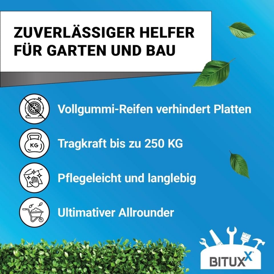 Wytrzymała taczka o pojemności 100 litrów to idealne narzędzie do prac budowlanych, ogrodniczych i gospodarczych. Dzięki solidnej konstrukcji i maksymalnemu udźwigowi do 250 kg, doskonale sprawdzi się do transportu ziemi, piasku, gruzu czy innych materiałów.