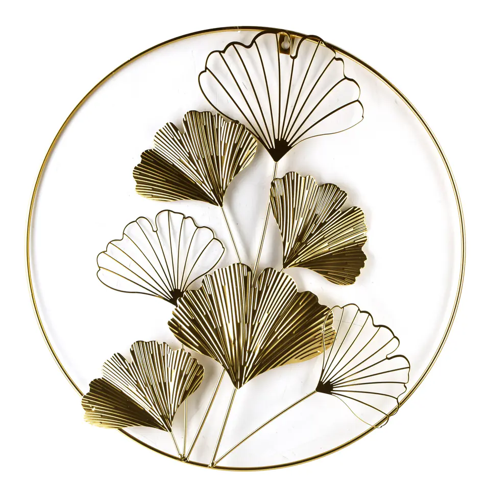 Metalowa ozodba ścienna z serii TALA GINGKO marki MONDEX since 1986. Złota okrągła dekoracja z liśćmi miłorzębu.wymiary: 45x1cmwaga: 358gzapakowana jednostkowo w brązowy karton:47x47x2cmOdkryj elegancję i wyrafinowanie w każdym szczególe dekoracji ściennej dekoracjaTALA GINGKO to nie tylko zwykły element dekoracyjny . to drobny luksus, który możecałkowicie zmienić charakter i nastrój Twojego wnętrza, dodając mu ciepła iniezwykłej elegancji.Główne cechy produktu:Wyjątkowy Design: Unikatowy wzór liścimiłorzębu, symbolizującego siłę i długowieczność, czyni z tej dekoracji element,który przyciąga uwagę i staje się centrum zainteresowania w każdympomieszczeniu.Złote Wykończenie: Blask złotego wykończenia dodaje efektu swobody iwykwintności, odbijając światło w sposób, który ożywia przestrzeń i wypełnia jąciepłym blaskiem.Precyzja Wykonania: Starannie wykonane detale i perfekcyjneoddanie kształtu liści miłorzębu świadczą o najwyższym rzemiośle i dbałości onajmniejsze szczegóły.