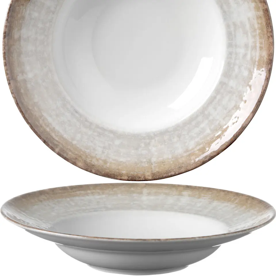 Talerz z kolekcji Crete firmy Hendi przeznaczony jest do serwowania dań z makaronem. Wykonany został z wytrzymałej porcelany. Idealnie więc sprawdzi się w trudnych warunkach panujących w dużych lokalach gastronomicznych, na przykład w restauracjach, pizzeriach czy barach. Brązowe zdobienia zostały wykonane pod szkłem, dzięki temu są odporne na mycie w zmywarkach.