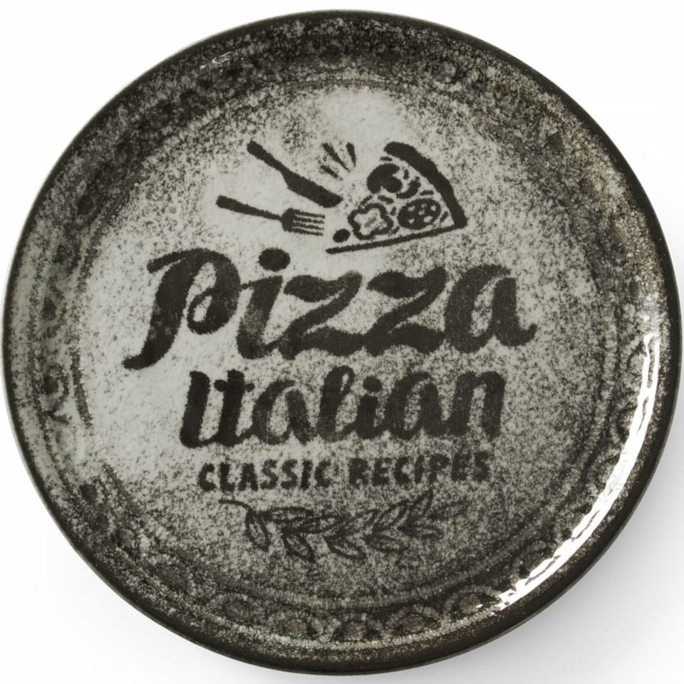Kod producenta: 778937Talerz do pizzy Recipe Collection Black firmy HENDI dzięki swojemu idealnie płaskiemu kształtowi i średnicy jest idealny do serwowania pizzy. Wyróżnia się wyjątkowym wzorem z napisem i rysunkiem pizzy, na czarnym marmurkowym tle. Dekoracje są wykonane pod szkliwem, dzięki czemu można bez obaw myć talerz w zmywarce.Cechy produktu: