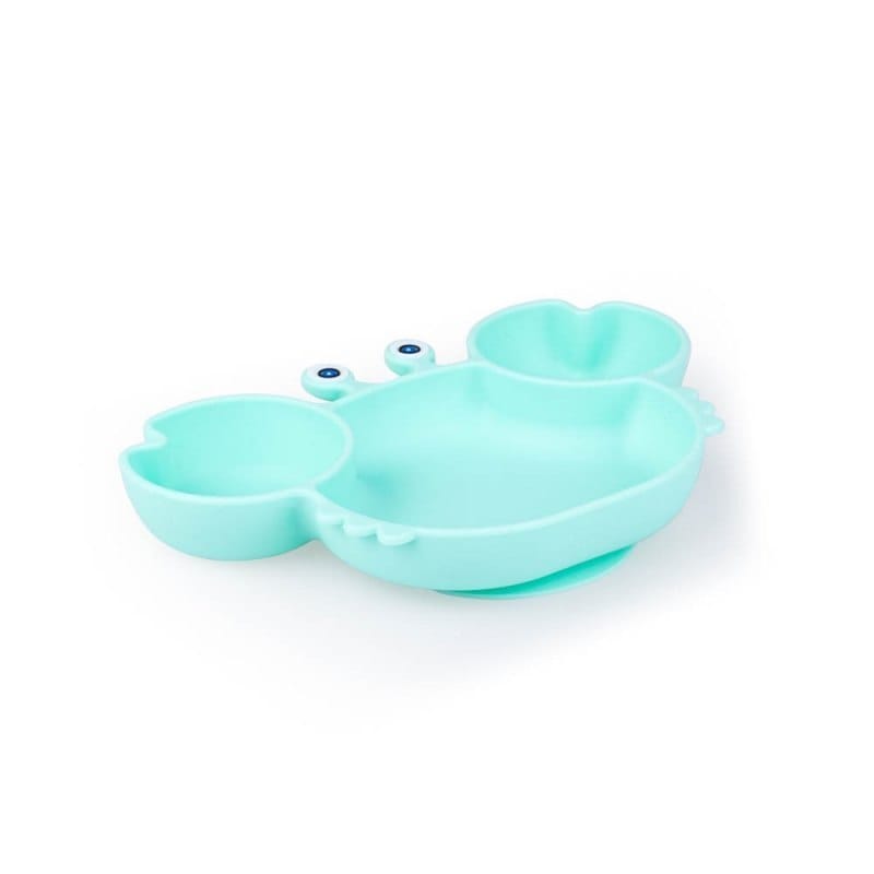 Talerz Krab miętowy Poznaj wesołego kraba, który umili każdy posiłek! Ten zabawny talerzyk zachęci malucha do podejmowania pierwszych prób samodzielnego jedzenia. Posiada trzy przegródki, dzięki czemu bez trudu rozdzielisz na nim składniki posiłku, co ułatwi dziecku poznawanie poszczególnych smaków i konsystencji spożywanego jedzenia. Talerzyk wyposażony jest w praktyczną przyssawkę, która zapobiega niekontrolowanemu przesuwaniu się talerza podczas posiłku. Cechy produktu: - wykonany z silikonu; - posiada 3 przegródki o pojemnościach: 85 ml, 85 ml i 350 ml - pozwalają rozdzielić poszczególne składniki posiłku; - wyposażony w przyssawkę zapobiegającą przesuwaniu się talerzyka; - dostępny także w innych kolorach; Wiek: 6m+