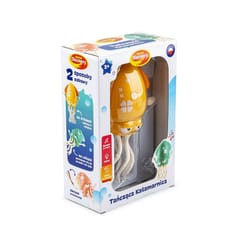 Żółciutka animatorka zaprasza do zabawy! Kałamarnica posiada ruchome odnóża, które, w zależności od tego w jakiej pozycji ustawimy zabawkę, pozwalają jej poruszać się w różny sposób. Kiedy kałamarnica stoi na odnóżach, tańczy w miejscu, a gdy leży płasko, przemieszcza się do przodu i do tyłu. Specjalny czujnik, znajdujący się na czubku głowy kałamarnicy, pozwala jej wykrywać przeszkody. Zabawka odtwarza piosenkę w języku polskim oraz wesołą melodię, a jej płetwy świecą kolorowo. Praktyczny przełącznik pozwala przestawić zabawkę na tryb poruszania się bez dźwięku lub na jej całkowite wyłączenie.