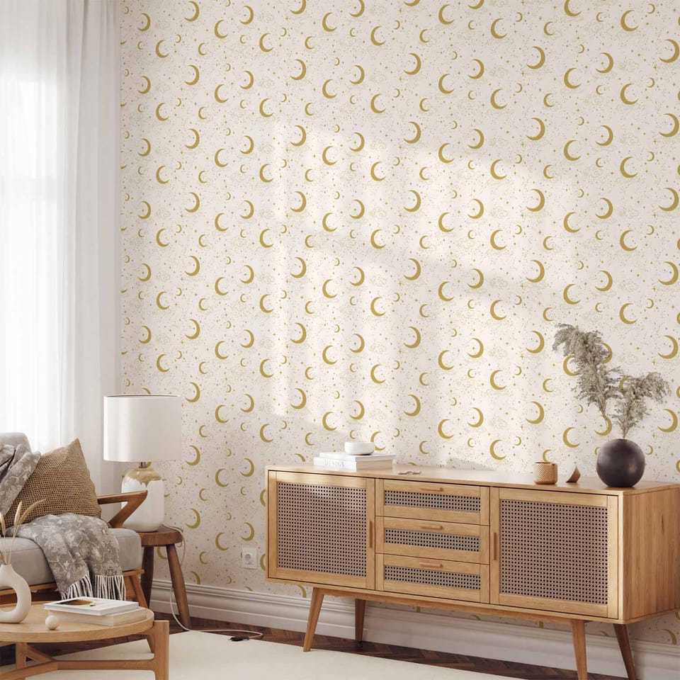Tapeta - Księżycowe Noce - delikatne księżyce i chmury w ciepłej tonacji rozmiar 50x1000, wykończenie Premium