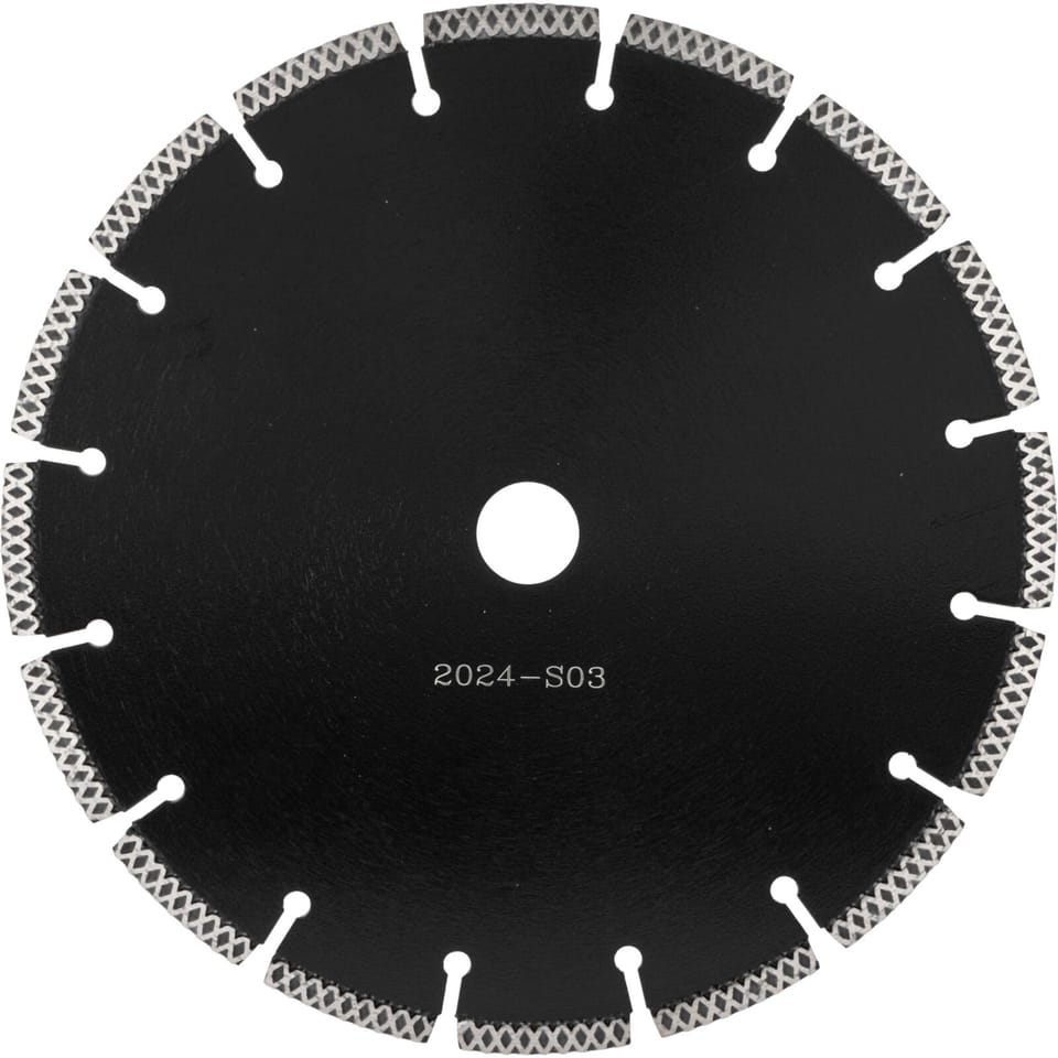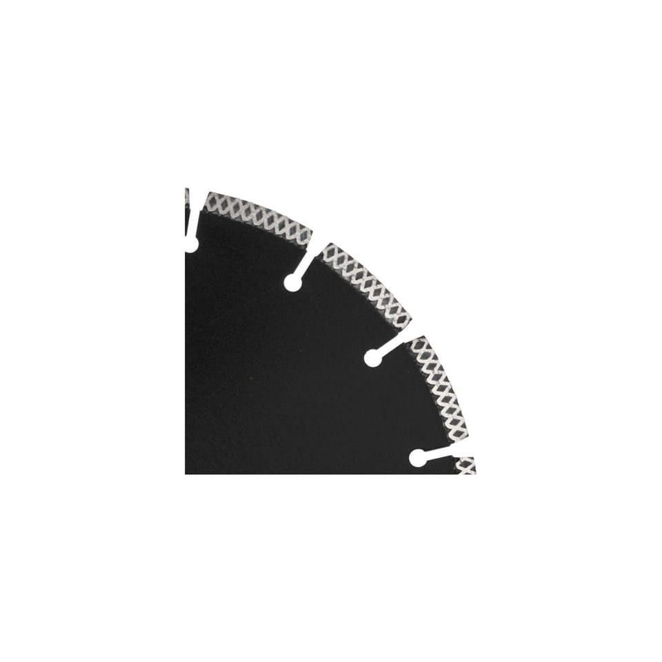 - Specjalna konstrukcja segmentu z wytłoczeniami w kształcie litery X zwiększa prędkość i precyzję cięcia, przyspiesza chłodzenie oraz poprawia stabilność pracy tarczy