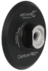 Średnica Tarczy 100mm. Średnica kołnierza centrującego wynosi 14,7 mm, wysokość 2,5 mm. Pozwala to na montaż wszystkich tarcz polerskich TM Distar oraz tarcz wielu innych producentów. Jeśli średnica otworu tarczy jest mniejsza niż średnica kołnierza, można go łatwo odkręcić i użyć podstawy bez funkcji centrowania.