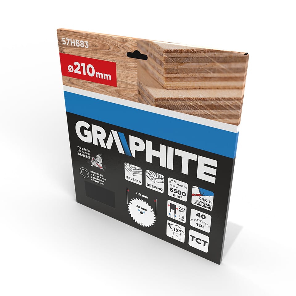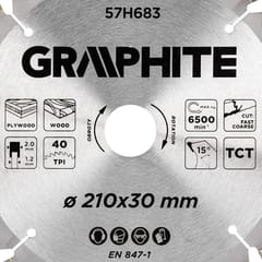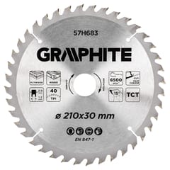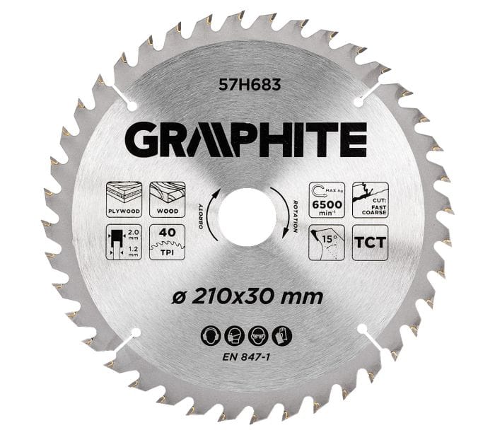 Tarcza do pilarki, widiowa, 210 x 30 mm, 40 zębów TCT, grubość tarczy 1,2 mm, grubość zęba 2 mm, redukcje 25,4/20/16, fast cut, maksymalna prędkość obrotowa 6500min-1, przeznaczenie: drewno, sklejka. Pasuje do 58GE121.