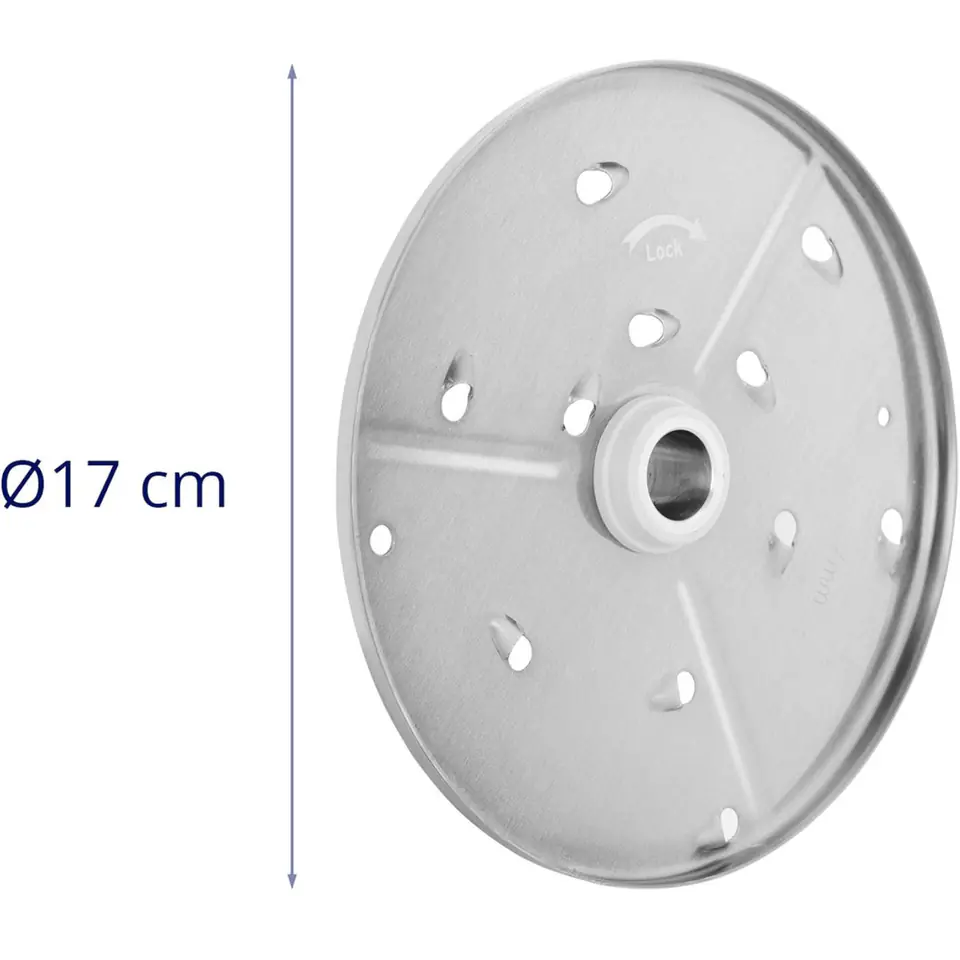 Tarcza do wiórków marki Royal Catering tnie owoce i warzywa na wiórki o grubości 7 mm. Ostrze zostało wykonane z bezpiecznej dla żywności stali nierdzewnej, która jest wysoko odporna na korozję. Idealnie nadaje się do obróbki dużej ilości składników. Tarcza pasuje do krajalnic RCGS 400 lub RCGS 600 do plastrów o średnicy 174 mm.