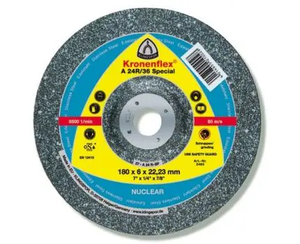 - Typ A 24 R/36 SPECIAL – tarcza do szlifowania stali nierdzewnej i kwasoodpornej o wysokiej wydajności zdejmowania materiału