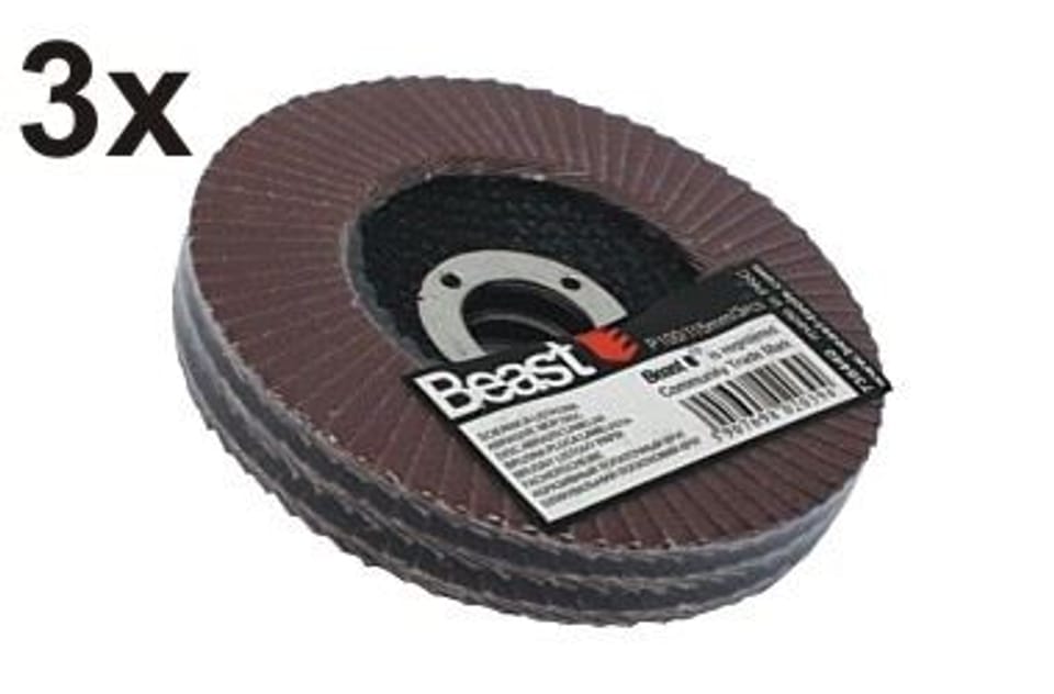 W zestawie znajdują się 3 sztuki dysków szlifierskich listkowych (inaczej ściernica). Zbudowanych z nałożonych na siebie listków papieru ściernego - 72 listki na jednym dysku.