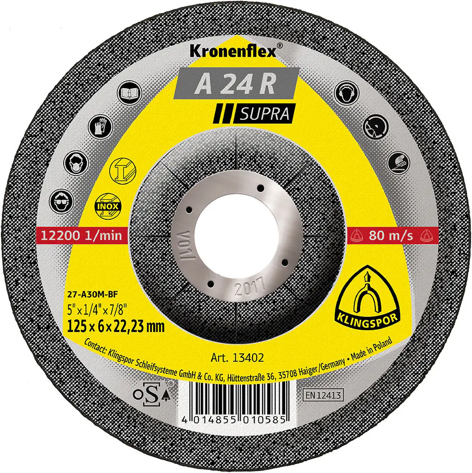 - Typ A 24 R SUPRA – tarcza do szlifowania stali
