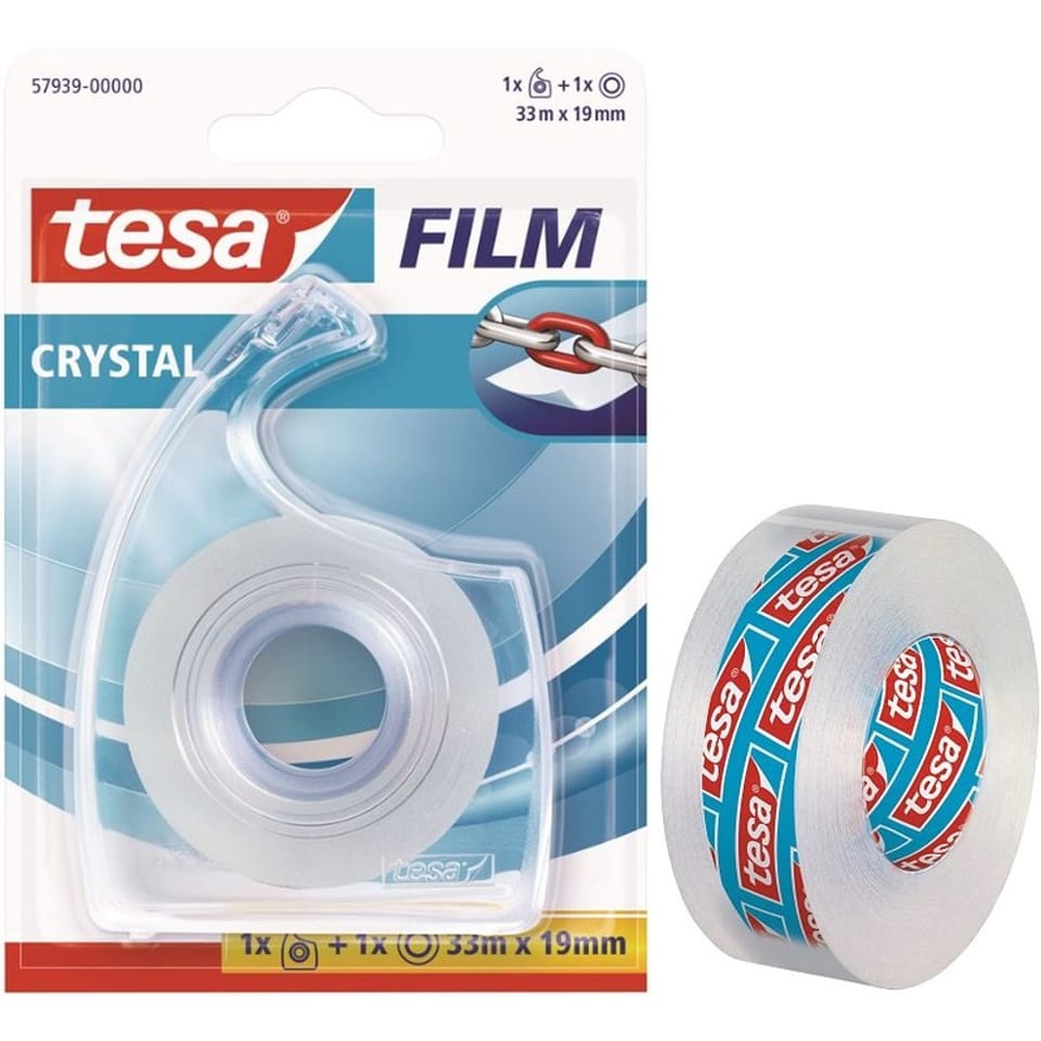 * taśma biurowa TESA FILM CRYSTAL z podajnikiem * kolor: przezroczysta * bez rozpuszczalników * długość: 33 m * szerokość: 1,9 cm * podajnik z ostrzem łatwo odcinającym taśmę * możliwość wymiany taśmy w podajniku * wytrzymała * z mocnym klejem * nazwa tesa? pochodzi od imienia i nazwiska sekretarki Elsy Tesmer, która pracowała w firmie BEIERSDORF w HAMBURGU - wymyśliła tę nazwę, łącząc pierwsze dwie litery swojego nazwiska i ostatnie dwie litery imienia - historia pierwszej technicznej taśmy samoprzylepnej, marki TESA, zaczyna się w 1896 roku - obecnie TESA jest jednym z czołowych światowych producentów samoprzylepnych produktów i rozwiązań systemowych dla przemysłu, fachowców i konsumentów