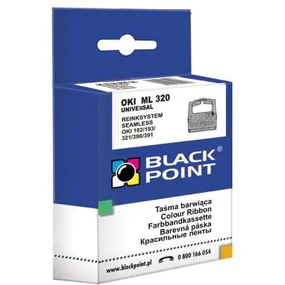Taśma BLACK POINT (KBPO320) czarna nylon 8mm/1,8m zamiennik OKI (09002303) ML320/182/391
