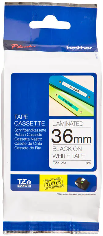 Brother TZE261 36MM BLACK ON WHITE TAPE - MOQ 5 TZe-261, TZ, 8 m, Box, 3.6 cm