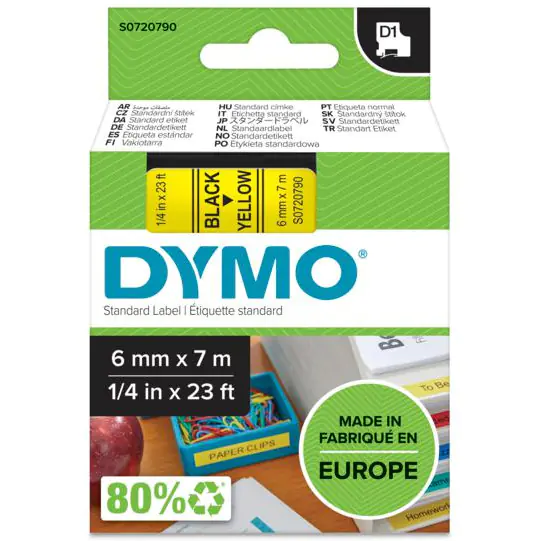 Kasety etykiet DYMO D1 powstaly specjalnie do drukarek etykiet LabelManager i LabelWriter Duo i oferują róznorodnośc i efekty, które odpowiadają na wiekszośc potrzeb związanych z etykietowaniem. Oryginalne etykiety DYMO D1 przywierają do wiekszości czystych, plaskich powierzchni - w tym do plastiku, papieru, metalu, drewna i szkla - i latwo sie je oddziela, co ulatwia nanoszenie poszczególnych etykiet. Wszechstronne i trwale etykiety D1 pozwalają zapomniec o niedogodnościach w organizowaniu domu i biura.