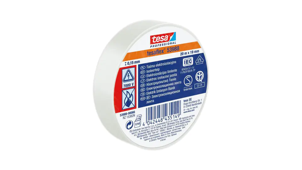 Taśma izolacyjna TESAFLEX-7000V/20X19/W przeznaczona jest do izolacji i znakowania przewodów