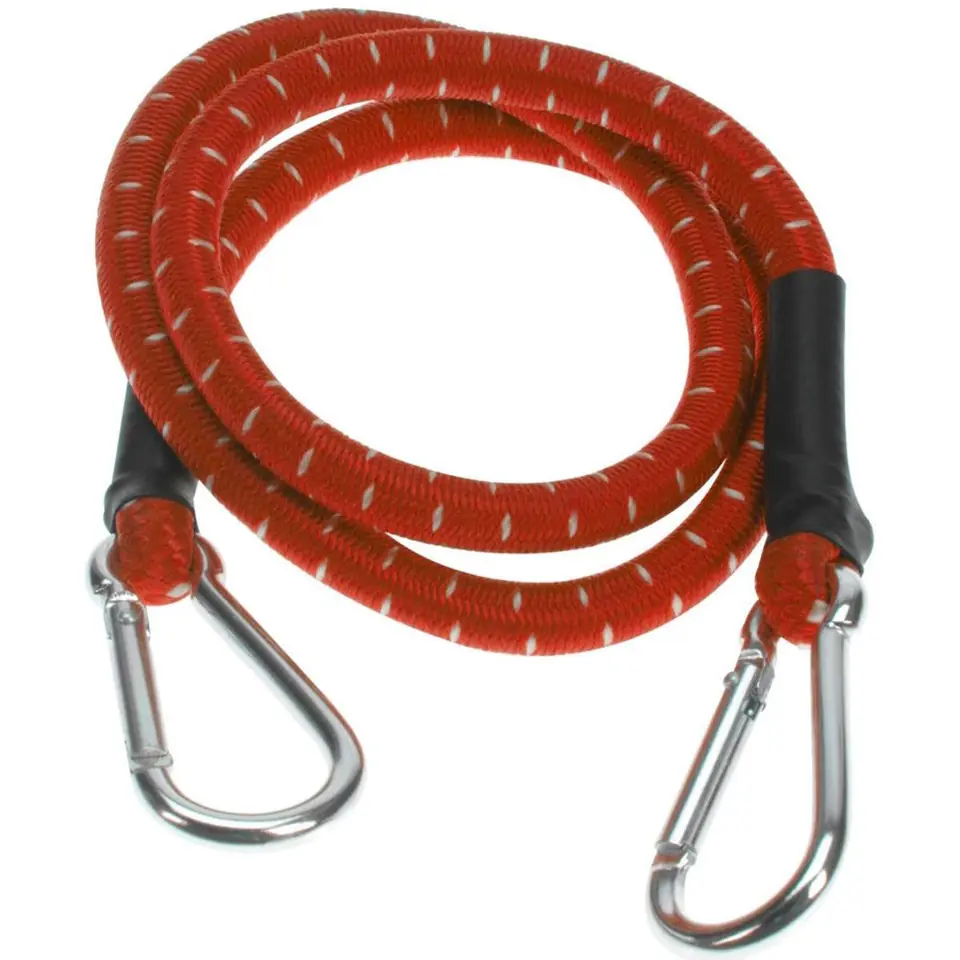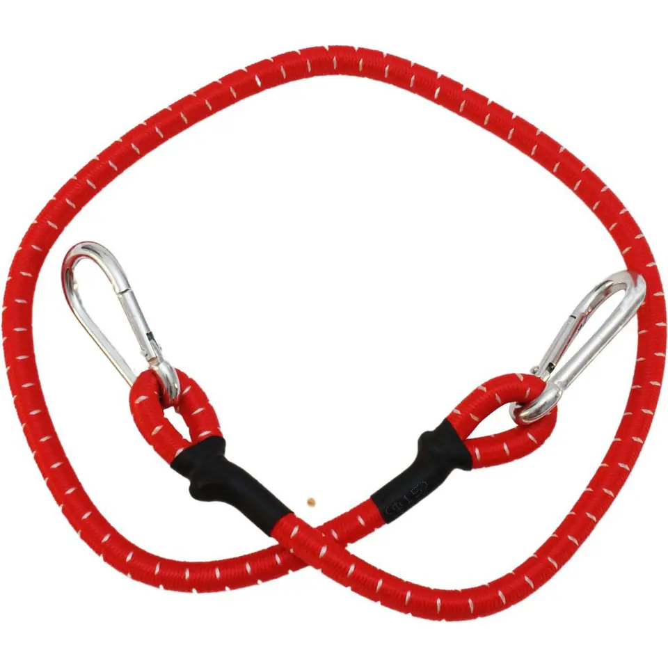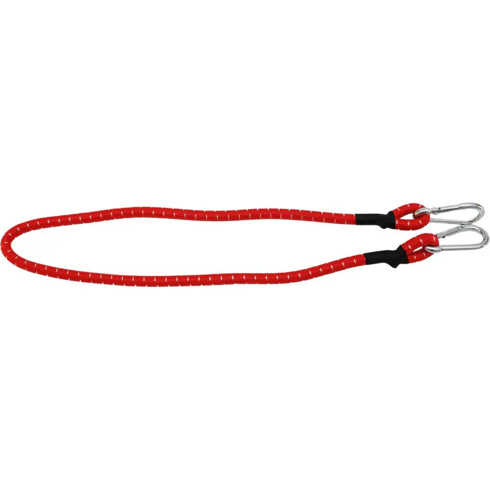 TAŚMA GUMA DO MOCOWANIA BAGAŻU KARABIŃCZYK 80CM 1SZT przeznaczona jest do mocowania lekkich i niewielkich ładunków, czy bagaży na przyczepach lub w bagażniku. Wyposażona w karabinki zapewnia pewne unieruchomienie przedmiotów.