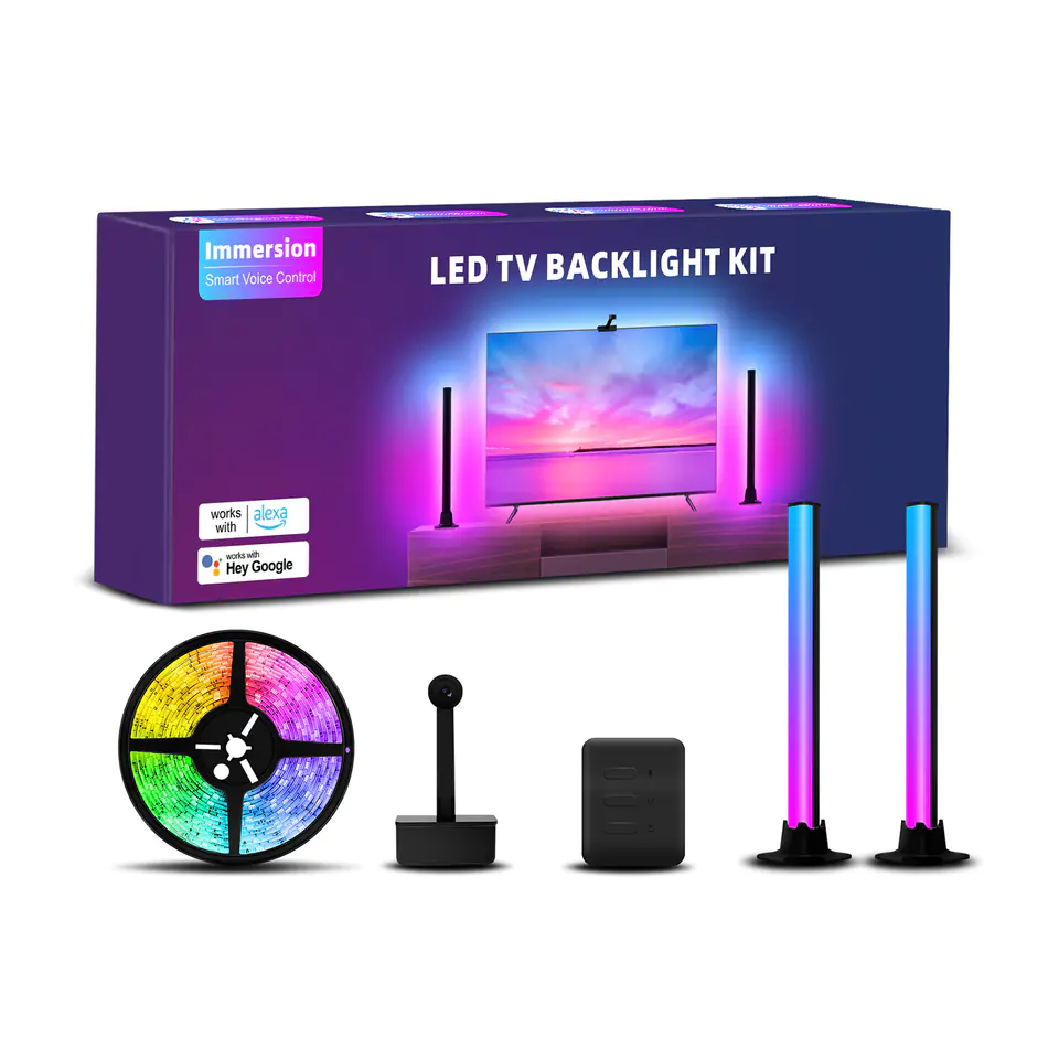 Inteligentne podświetlenie telewizora Spacetronik Glow Strip KIT Wi-Fi: Taśma LED 3,8 m + kamera + kontroler + 2x lampa