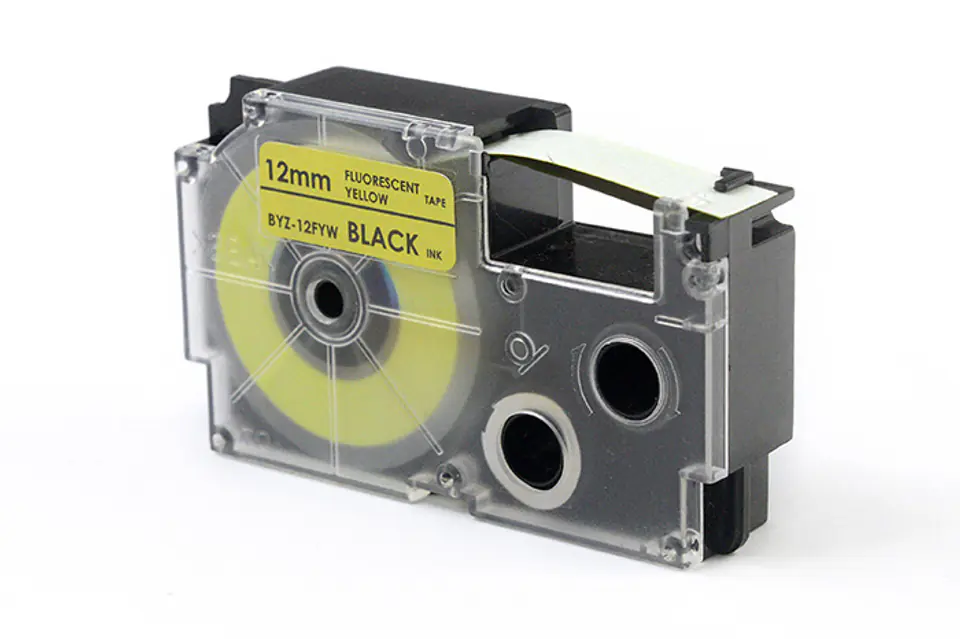 Taśma JetWorld Zamiennik Casio Czarny na Fluorescencyjnym Żółtym 12mm x 5,5m XR-12FYW, XR12FYW