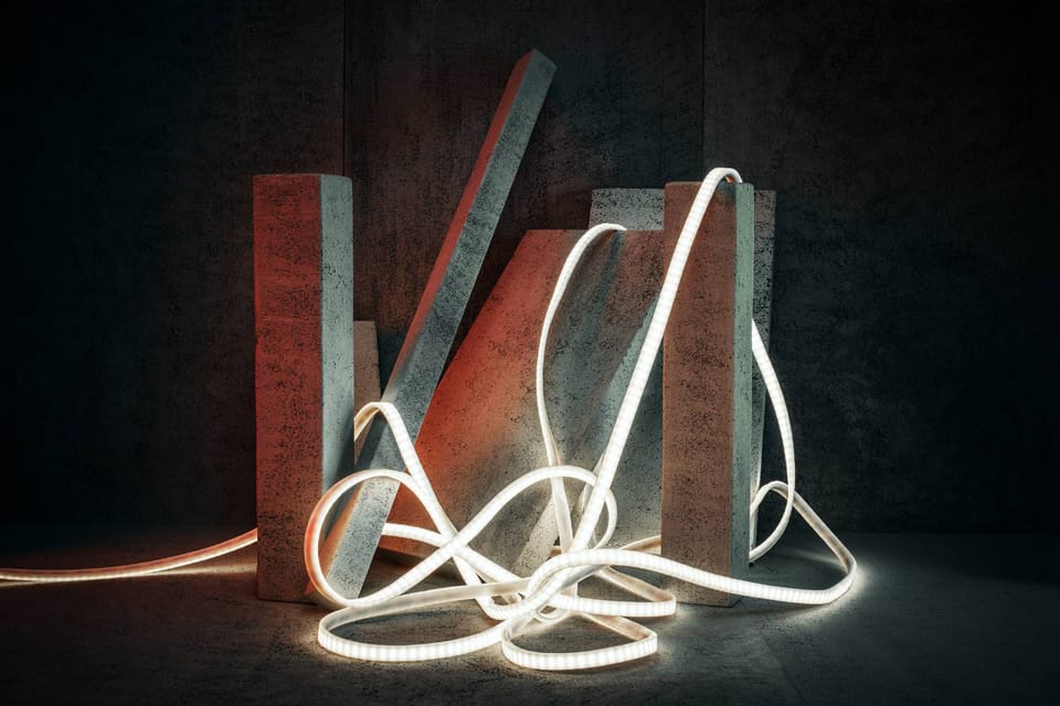 Taśma LED matowa Sunlit o długości 10 m, zawierająca 180 diod/m. Sama taśma jest chroniona przez matową osłonę, dzięki czemu nie oślepia jak inne taśmy ledowe. Łatwość montażu, np. przy wykorzystaniu opasek kablowych lub przez zawieszenie na hakach montażowych. Może służyć jako oświetlenie ogólne albo do oświetlania miejsc niebezpiecznych, takich jak szyby wind, schody lub platformy. Może współpracować ze ściemniaczem, aby móc dostosować siłę światła do aktualnych potrzeb. Ze względu na stopień ochrony IP 65 produkt może być używany zarówno na zewnątrz, jak i wewnątrz. Przed włączeniem zasilania taśmę należy rozwinąć na całą długość, ponieważ w przeciwnym wypadku istnieje ryzyko jej stopienia.