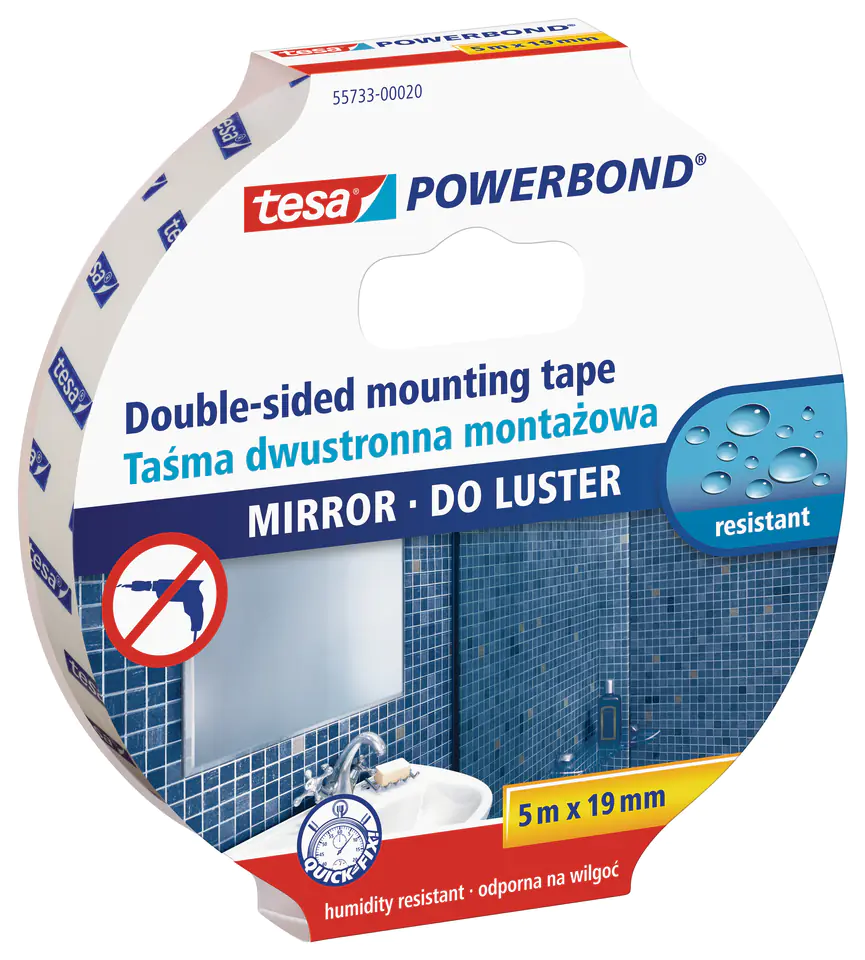 - Nie ryzykuj uszkodzenia płytek podczas wiercenia. Odstaw na bok śruby, wkręty i wiertarkę. Wybierz nowoczesne taśmy mocujące, które zapewnią Ci skuteczny, łatwy i niezwykle estetyczny montaż – także w łazience!