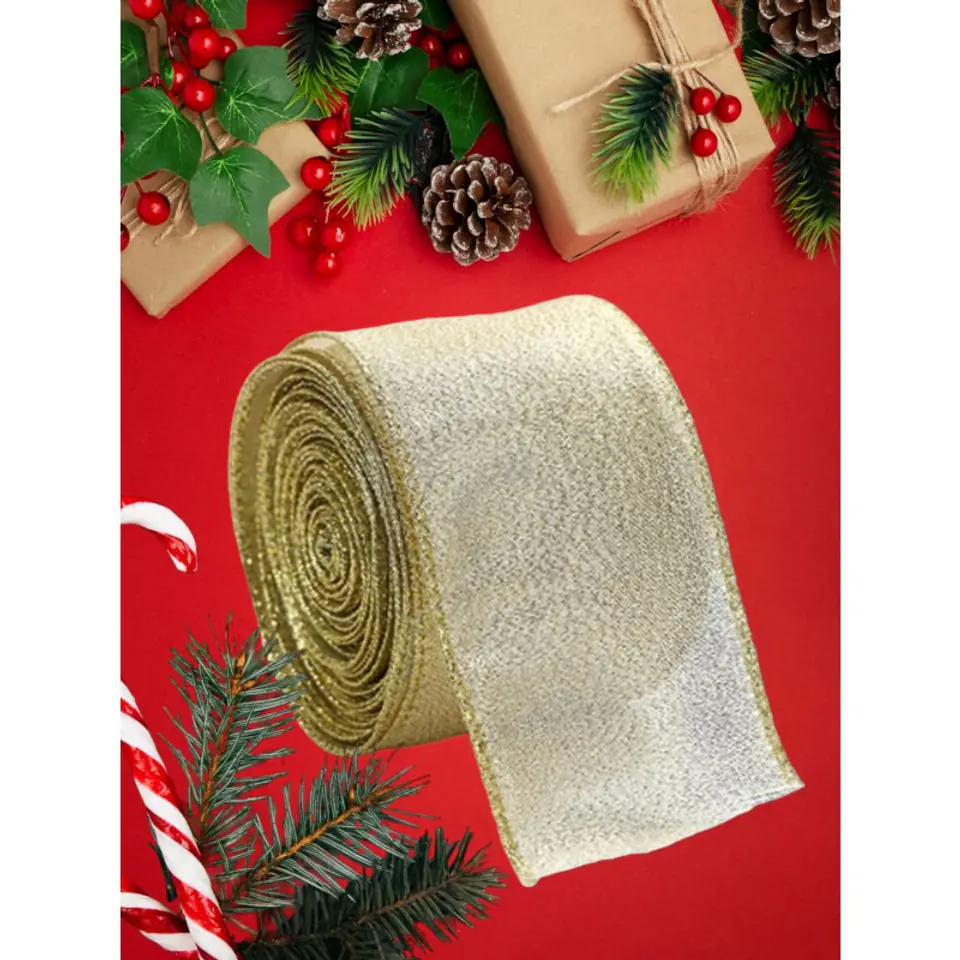 TAŚMA ŚWIĄTECZNA BOŻONARODZENIOWA Specyfikacja:Kolor: złota taśma dekoracyjna Wymiary:Długość: 2 mSzerokość: 6,3 cm