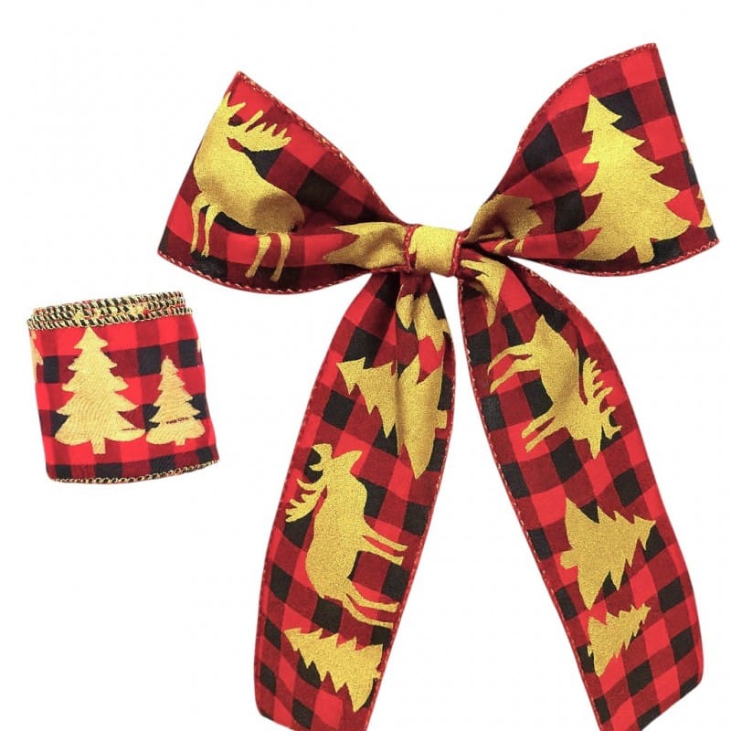 Taśma świąteczna na kokardę, wstążka na prezent Boże Narodzenie 5cm x 5m KSN86