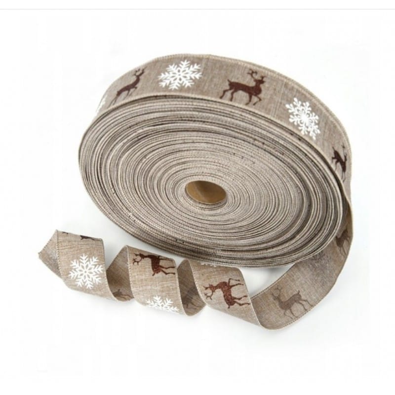 TAŚMA ŚWIĄTECZNA BOŻONARODZENIOWA Specyfikacja:Kolor: beżowa taśma z reniferami i śnieżkami Wymiary:Długość: 2 mSzerokość: 5 cm