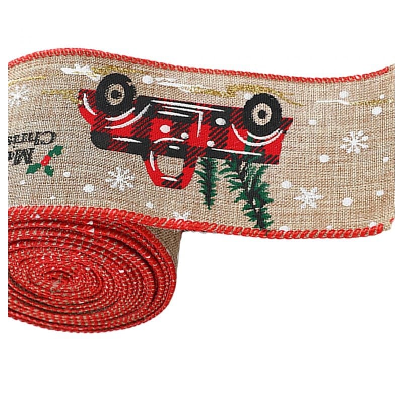 TAŚMA ŚWIĄTECZNA BOŻONARODZENIOWA Specyfikacja:Kolor: beżowa taśma z czerwonymi samochodzikami i choinkami Wymiary:Długość: 2 mSzerokość: 6,3 cm