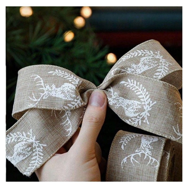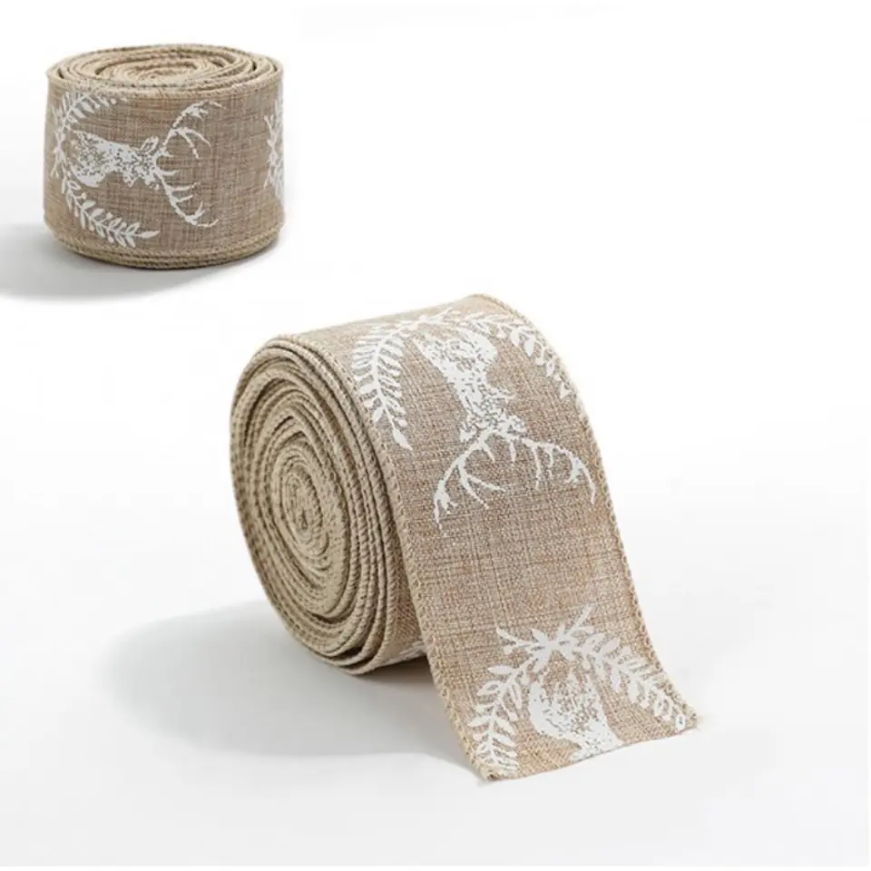TAŚMA ŚWIĄTECZNA BOŻONARODZENIOWA Specyfikacja:Kolor: beżowa taśma z białymi jelonkami Wymiary:Długość: 2 mSzerokość: 5 cm