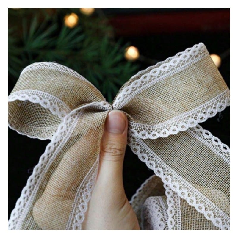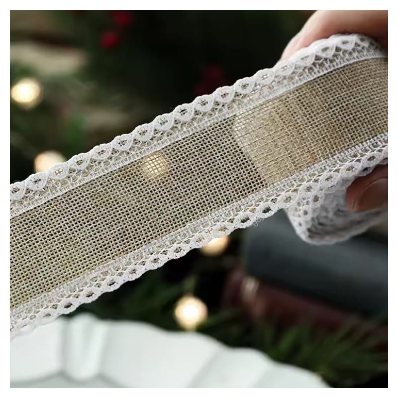 TAŚMA ŚWIĄTECZNA BOŻONARODZENIOWA Specyfikacja:Kolor: beżowa taśma z białą koronkąWymiary:Długość: 2 mSzerokość: 5,2 cm