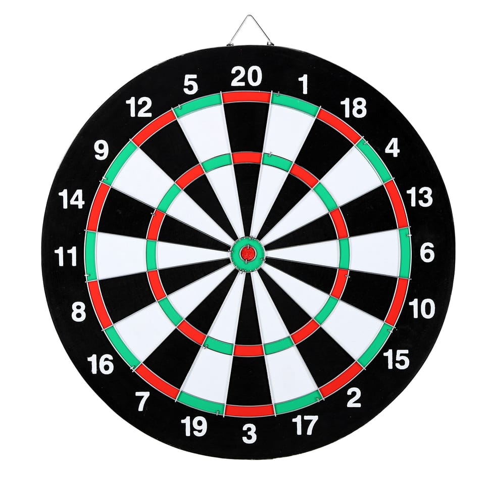 TDN05 2w1 NILS FUN to dwustronna tablica do gry w darta. Z jednej strony mamy klasyczną tarczę, a z drugiej strony czarno białą tarczę Bull's Eye. TDN05 w zestawie posiada również 6x rzutek, których część chwytna wykonana jest ze stali nierdzewnej, dzięki czemu są odpowiednio wyważone i świetnie leżą w dłoni. Pozwala to na oddawanie dokładnych rzutów. Rzutki są zaprojektowane tak, aby zapewnić optymalną równowagę oraz stabilność w locie, co wpływa na celność trafień w wybrane pole. Sama tarcza wykonana jest ze sprasowanego papieru, dzięki czemu rzutki bardzo precyzyjnie wbijają się w poszczególne pola Zasady gry: W klasycznej odmianie darta gracze rzucają kolejno po trzy rzutki. Punkty sumują się i są odejmowane od wartości 301 lub 501. Wygrywa gracz, który jako pierwszy osiągnie wartość 0. Natomiast w odmianie Bull's Eye, gracze rzucają kolejno po trzy rzutki i sumują punkty, lecz wygrywa ten gracz, który jako pierwszy osiągnie wartość 500 lub 1000. Podnieś swoją grę na wyższy poziom i doświadczaj prawdziwej radości z gry w darta! Specyfikacja: Materiał: Tablica: Papier Rzutki: stal, plastik Wymiary: Średnica: 38 cm Grubość: 1,2 cm W zestawie: Tarcza 2w1, 6x rzutek, haczyk do montażu na ścianie, instrukcja obsługi Waga: 1 kg Uwagi: Nie przeznaczona do użytku komercyjnego 24-miesięczna gwarancja Importer: Abisal Sp. z o.o.| Polska | 41-807 Zabrze | ul. Pyskowicka 17 | e-mail: abisal@abisal.plAbisal Sp. z o.o. deklaruje, iż produkty sprzedawane przez firmę są bezpieczne i spełniają wymagania zawarte w Ustawie o ogólnym bezpieczeństwie produktów z dnia 12 grudnia 2003r. (Dz.U. z dnia 31 grudnia 2003r.)