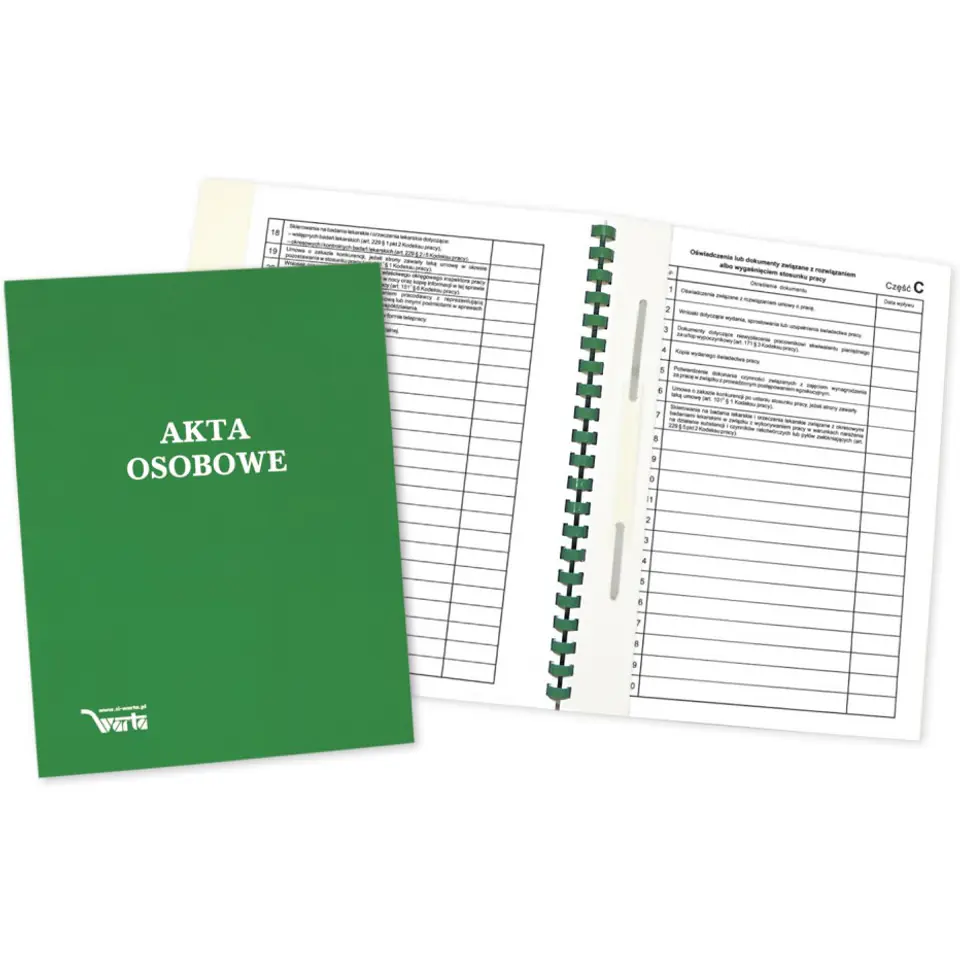 Teczka akt osobowych ABCDE binda wew.z treścią zielona 339-046 WARTA