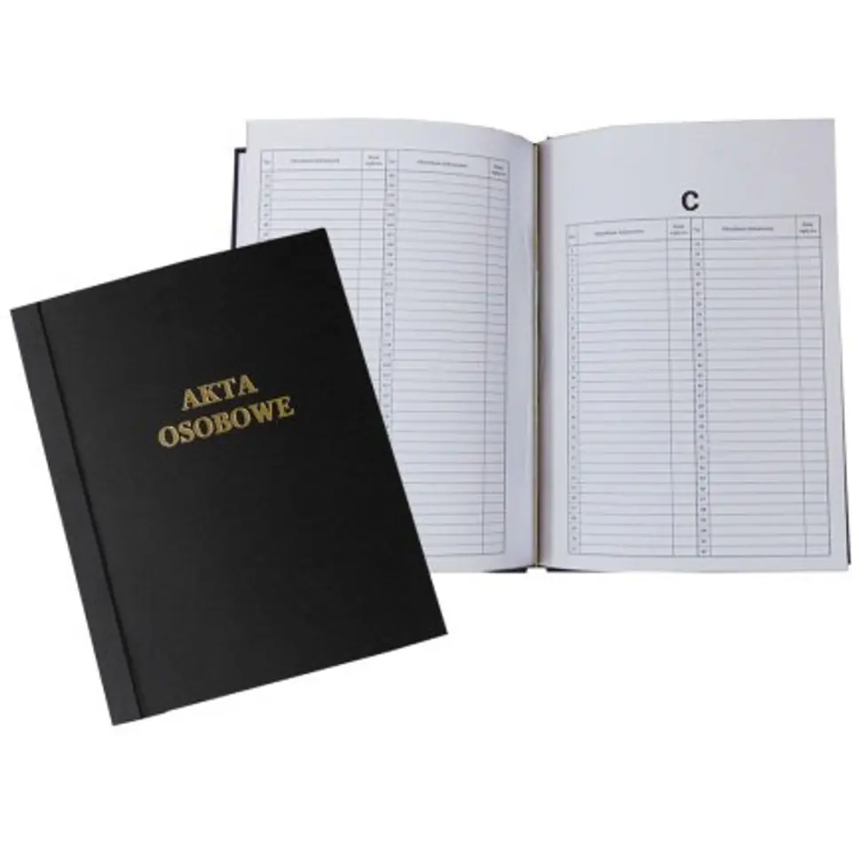 - Na okładce umieszczony jest złoty nadruk "Akta osobowe", wykonany metodą tłoczenia na gorąco.