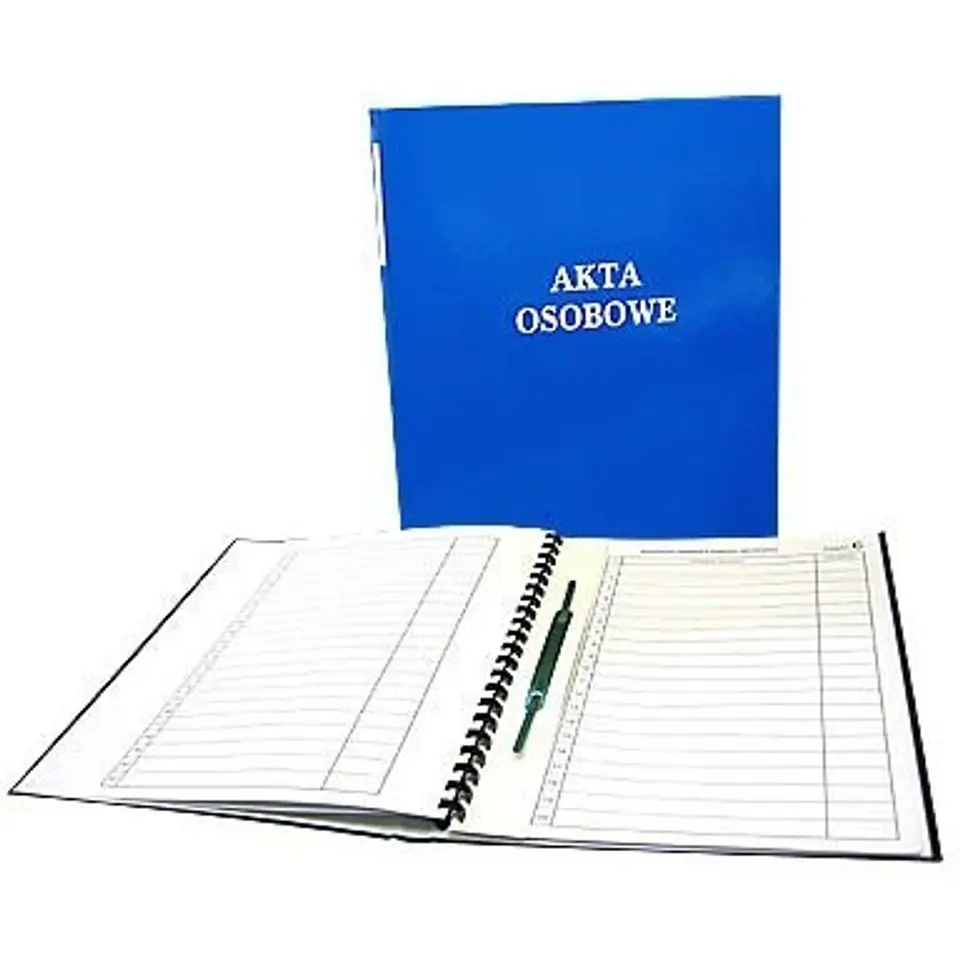 - Na okładce umieszczony jest złoty nadruk "Akta osobowe", wykonany metodą tłoczenia na gorąco.