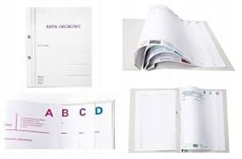 * format: 310x255 mm * materiał: bezkwasowy karton klasy GD o gramaturze 300 g/m2 * pH: 6-8 * kolor teczki: biało-szara * oczka służą do wpięcia teczki w segregator * dwustronnie zadrukowane przekładki A, B, C, D o gramaturze 80 g/m2 z ekologicznego papieru offsetowego z opisem tematycznie segregowanych dokumentów akt osobowych * plastikowy docisk dokumentów zabezpiecza przed skaleczeniem * każda sztuka posiada jednostkowy kod kreskowy * opakowanie zbiorcze 10 sztuk * CERTYFIKATY :ISO 9001, ISO 14001
