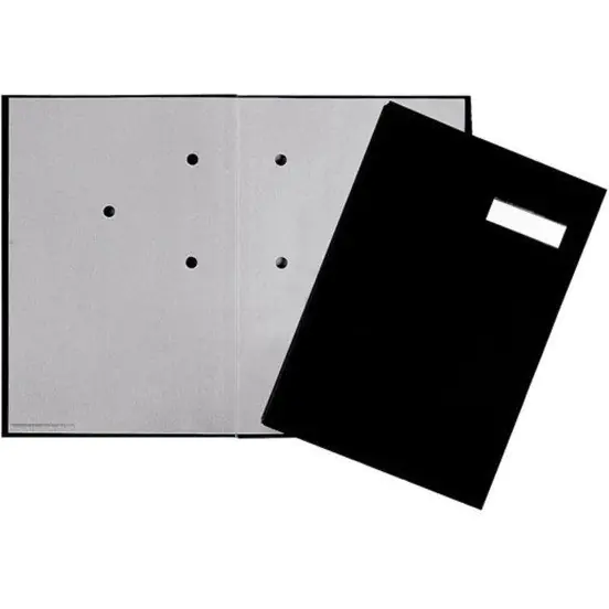 Czarna teczka do podpisu DE LUXE 20-cześciowa z rozciągliwym grzbietem umozliwiającym przechowywanie w jednej przegródce wiekszej ilości dokumentów.