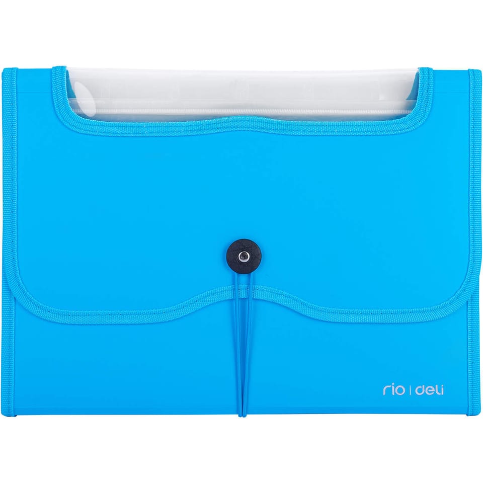 Teczka harmonijkowa z gumką 13-przegródek okno PVC RIO niebieska 38128 BLUE DELI