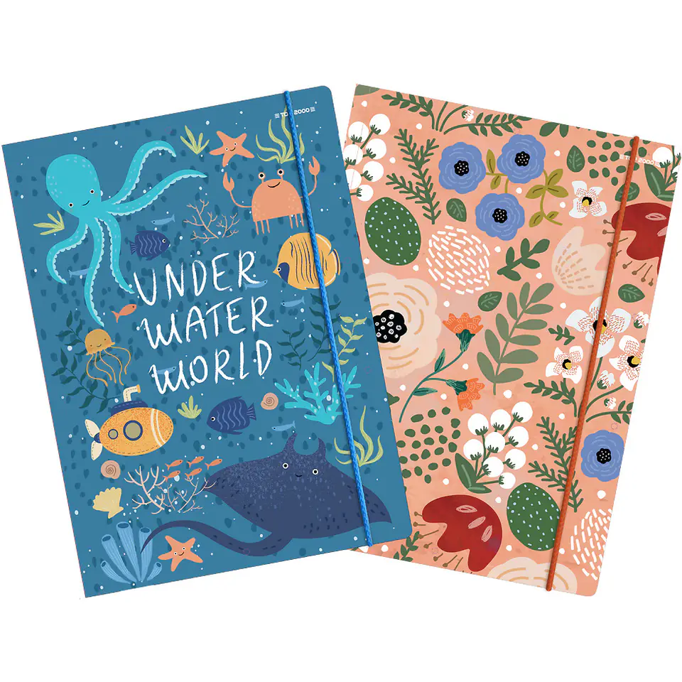 Teczki marki Top 2000 to doskonałe narzędzie do archiwizowania szkolnych prac. Bigowany grzbiet może pomieścić do 200 kartek. Teczki zamykane są na dwie narożne gumki, co zapewnia ochronę dla ich zawartości. Gramatura kartonu 320 g, z którego wykonane są teczki sprawia, że są sztywne, wytrzymałe oraz odporne na przedarcia.
