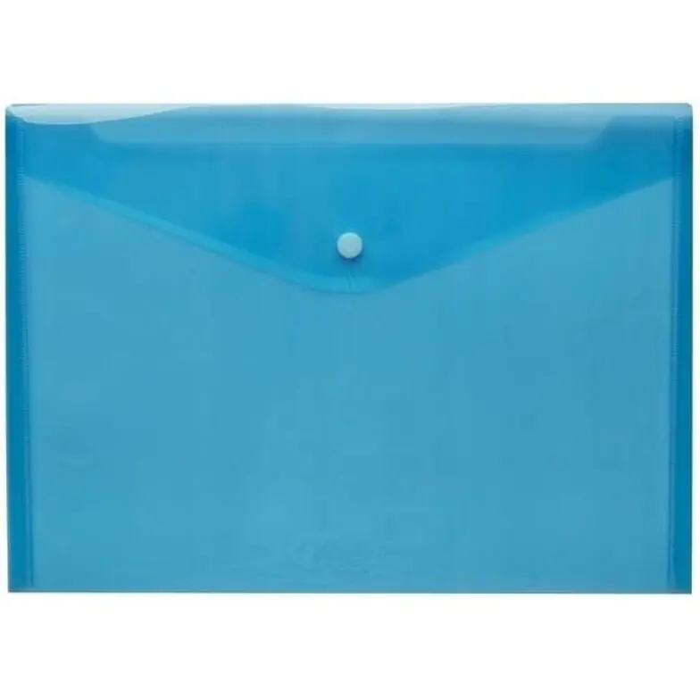 Teczka wykonana z transparentnego polipropylenu na wzór koperty listowej. Przeznaczona do przechowywania i przenoszenia dokumentów w formacie A4 oraz drobnych przedmiotów. Wyposażona w trwałe zamknięcie na zatrzask. Kolor: niebieska - wykonana z transparentnego polipropylenu na wzór koperty listowej - zamykana na zatrzask - pomieści nie tylko dokumenty, ale i drobne przedmioty - niebieska