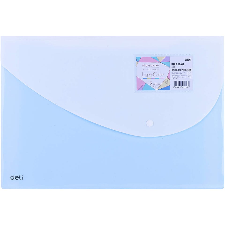 Teczka kopertowa 5506_BLUE Deli z serii pastelowej Macaron to doskonałe rozwiązanie do przechowywania i organizacji dokumentów. Wykonana z trwałego materiału PP, zapewnia trwałość i ochronę dla Twoich ważnych papierów.