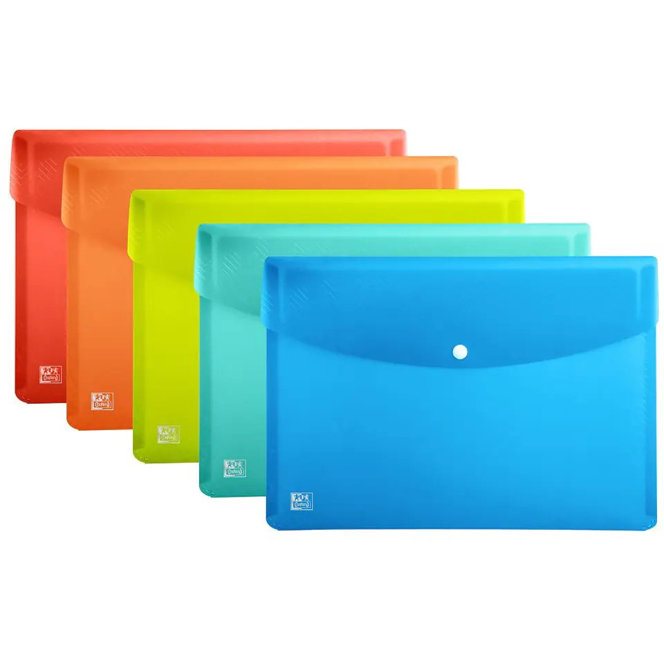 Teczka kopertowa na zatrzask wykonana z mocnego polipropylenu o grubości 300 mic.