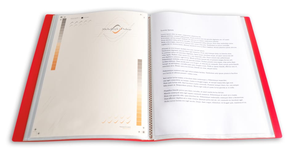 - Posiada grzbiet i kieszeń opisową na przedniej okładce, format A4.