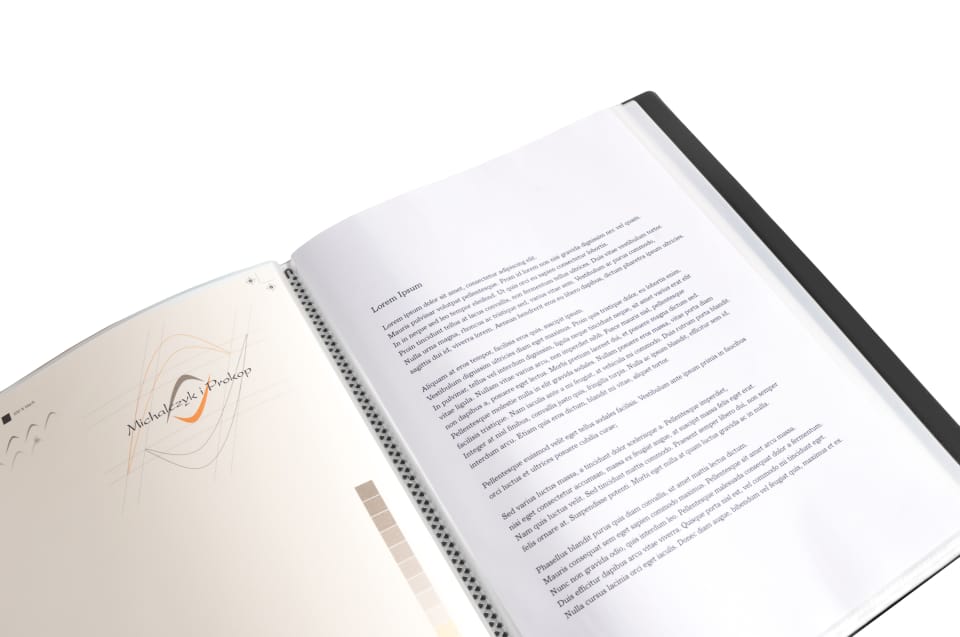 - Posiada grzbiet i kieszeń opisową na przedniej okładce, format A4.