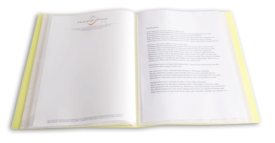 • Posiada grzbiet i kieszeń opisową na przedniej okładce, format A4.