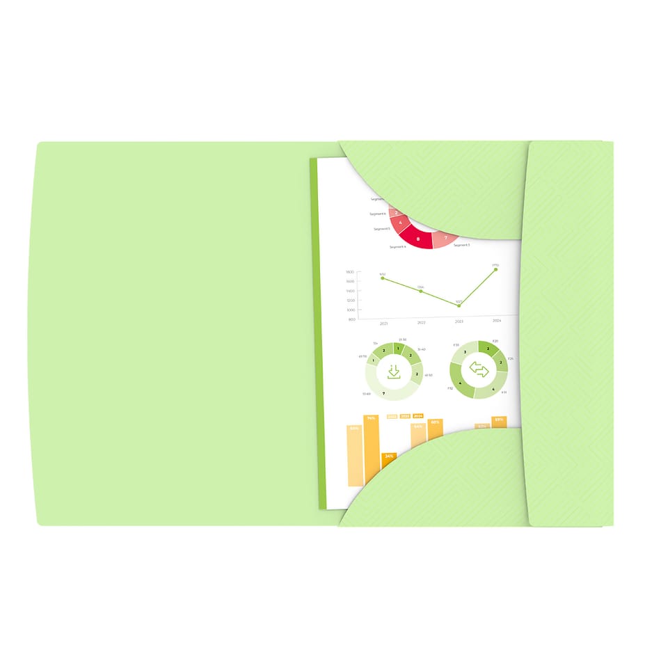 - 3 wewnętrzne skrzydła stabilizują dokumenty wewnątrz i dodatkowo chronią zawartość teczki