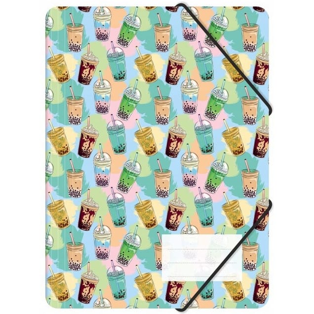 Teczka A4 z gumką z nadrukiem BUBBLE TEA- Teczka rysunkowa wykonana z folii PP
