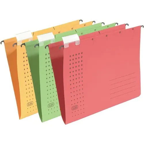 Wykonana z mocnego kartonu o gramaturze 230 g/m2_przesuwny szyldzik z wymienną etykietą opisową_dwie pary nacięć do pasków skoroszytowych