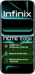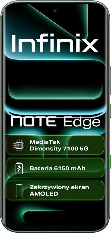 Infinix NOTE Edge to smartfon, który łączy w sobie zaawansowaną wydajność z nienagannym, ultracienkim designem o grubości zaledwie 7,2 mm, jednocześnie kryjąc w smukłej obudowie olbrzymią baterię 6150 mAh. Zakrzywiona krawędź i bezramkowy ekran nadają urządzeniu nowoczesny, spójny charakter, doskonale leżąc w dłoni i łącząc elegancki wygląd z codzienną ergonomią. Wysoka odporność na uszkodzenia została osiągnięta dzięki klasie IP65, która chroni przed wodą i kurzem, oraz wzmocnionemu szkłu Corning Gorilla Glass 7i, skutecznie zabezpieczającemu ekran przed skutkami przypadkowych upadków.