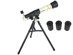Poznaj wiat astronomii, prezent idealny dla maego naukowca, zachci do odkrywania, co znajduje si na niebie.Teleskop dziaa, dziki zasadzie refrakcji i ogniskowania. Gdy wiato przechodzi przez soczewk, zbiera si i zaamuje we wklsym zwierciadle. Dlatego moemy obserwowa okular pionowy.