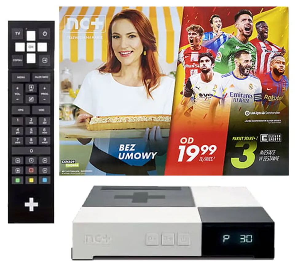 W pakiecie na start 3 miesiące pełnej oferty programowej Start+ wraz z kanałami Eleven Sport. A potem opłacaj pakiet, jaki Ci pasuje, wtedy gdy chcesz korzystać. Oferta programowa na poniższym zdjęciu z opakowania: